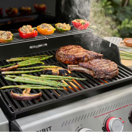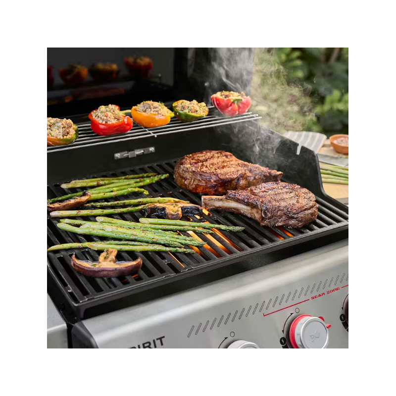 Préparez des aliments plus savoureux que jamais avec le barbecue à gaz réinventé Spirit S-435 en acier inoxydable, doté de 4 brûleurs, d’une Sear Zone et d'un réchaud latéral. Créez de belles et savoureuses marques de saisie sur la viande, le poisson et les légumes grâce aux deux boutons de réglage rouges des brûleurs Boost qui libèrent 40 % de puissance en plus dans la Sear Zone.