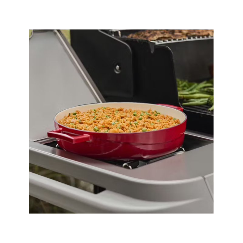 Surpassez-vous pour vos invités et cuisinez des plats inoubliables avec le barbecue à gaz réinventé Genesis E-335W doté de 3 brûleurs, d’une Sear Zone et d’un réchaud latéral. Intensifiez la chaleur avec deux brûleurs Boost qui libèrent jusqu’à 35 % de puissance en plus sur la Sear Zone extralarge pour des marques de saisie audacieuses et savoureuses sur la viande, le poisson et les légumes. Obtenez une chaleur uniforme sur toute la surface des grilles de cuisson grâce au système amélioré de brûleurs PureBlu à haut rendement qui s’allume de manière fiable et maintient un débit de gaz constant. Profitez d’un réchaud latéral pour faire mijoter ou sauter vos aliments et d’un thermomètre digital facile à lire.
