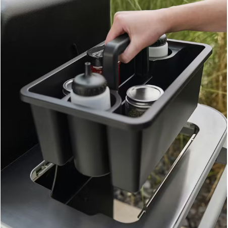 • La tablette latérale Weber Works est compatible avec des accessoires à insérer (vendus séparément).