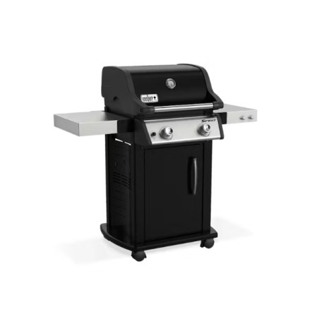 Le barbecue à gaz Spirit E-215 à deux brûleurs a été conçu pour s'adapter à des espaces plus petits, parfait pour une terrasse ou un balcon. Il est équipé de deux plans de travail rabattables pour y placer les plats de service et les épices, tandis que les crochets à ustensiles permettent d'avoir les ustensiles de barbecue toujours à portée de main.