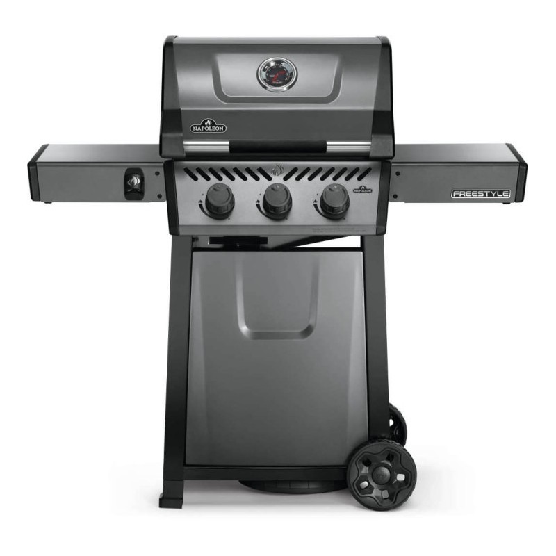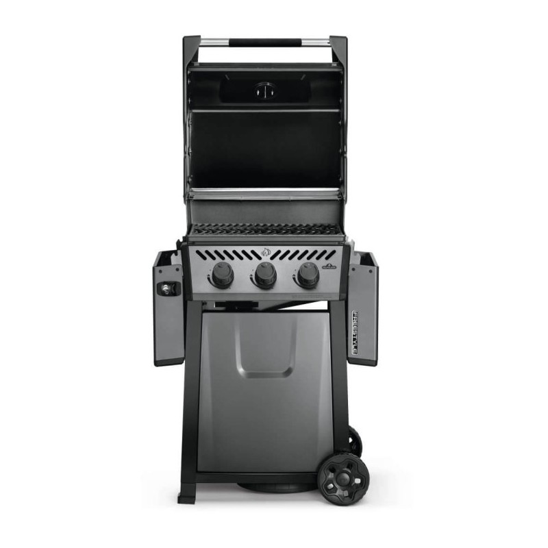 Le barbecue Freestyle 365 au propane est un barbecue compact doté de fonctionnalités de luxe offrant une valeur imbattable. Les brûleurs s’allument facilement chaque fois grâce au système d’allumage instantané JETFIRE qui envoie un jet de flamme. Obtenez une cuisson parfaite sur les grilles de cuisson en fonte émaillée. Trois brûleurs en acier inoxydable fournissent une chaleur facile à contrôler et à surveiller grâce aux boutons de commande ergonomiques et à la jauge de température intégrée. Équipé de roues robustes, le barbecue Freestyle peut être déplacé où vous le souhaitez, tandis que ses tablettes latérales faciles à rabattre et dotées de supports à ustensiles et d’un ouvre-bouteille font qu’il s’adaptera parfaitement à votre style de vie et à votre espace.