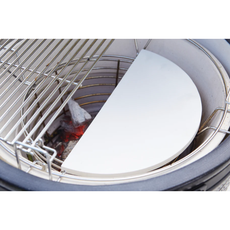 Le Kamal régule efficacement et maintient la chaleur grâce à sa construction en céramique à base de mullite. Ce matériau assure une bonne rétention de chaleur, permettant aux charbons de brûler de manière continue et de maintenir une température idéale. Avec un couvercle qui se ferme hermétiquement grâce à un joint en maille métallique durable et des ressorts en acier inoxydable, la chaleur, la fumée et les saveurs sont parfaitement préservées. Cuisiner avec le Kamal est relaxant et simple : ajustez la température pendant la cuisson en manipulant l'entrée d'air en bas et le clapet supérieur en haut.