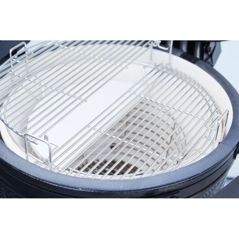 Kamal 2.0 est non seulement fonctionnel mais aussi ergonomiquement conçu avec un socle surélevé pour plus de confort pendant la cuisson. Les deux robustes tables latérales pliables en matériau HDPE durable et résistant aux intempéries offrent amplement d'espace pour les outils, les assiettes ou les ingrédients. Que vous optiez pour un grillage direct au-dessus des braises ou un grillage indirect en utilisant le système de cuisson flexible inclus, le Kamal enrichit votre expérience de barbecue avec des options de cuisson polyvalentes. Le système de cuisson flexible comprend un support sur mesure, deux grilles en acier inoxydable en forme de croissant, deux écrans thermiques en forme de croissant et un support pour marmite ou wok.