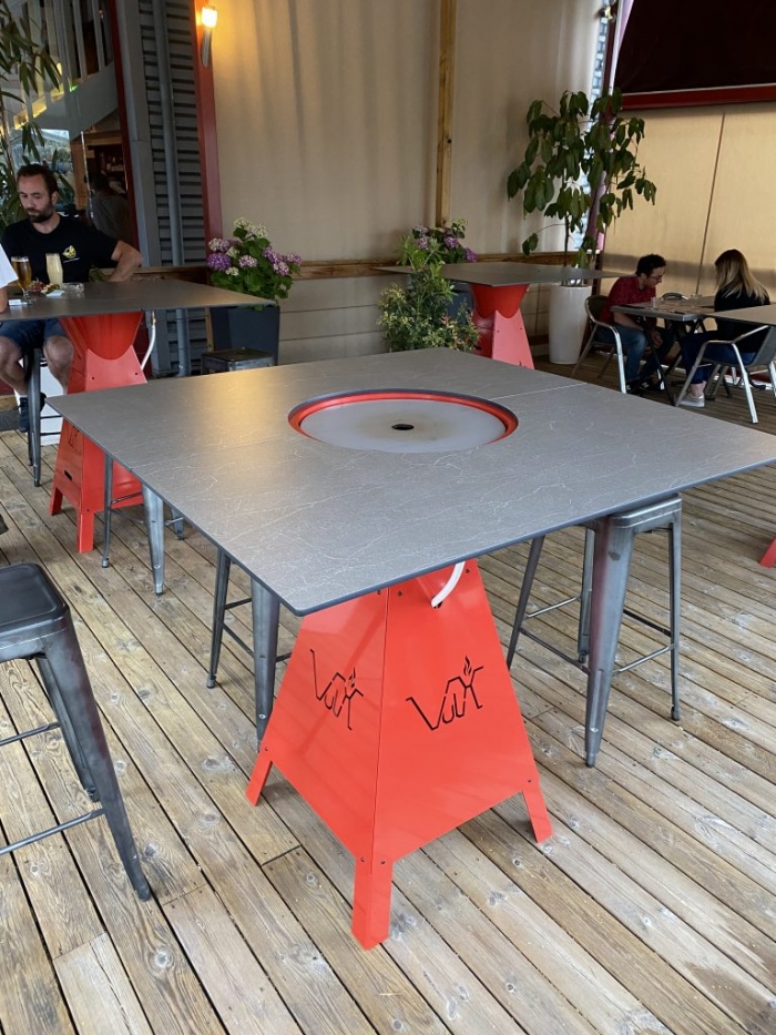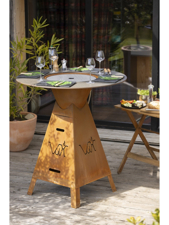 D’une hauteur d’1m10, dit Mange-debout ou hauteur de bar, permettant les repas traditionnels comme les apéros dinatoires.