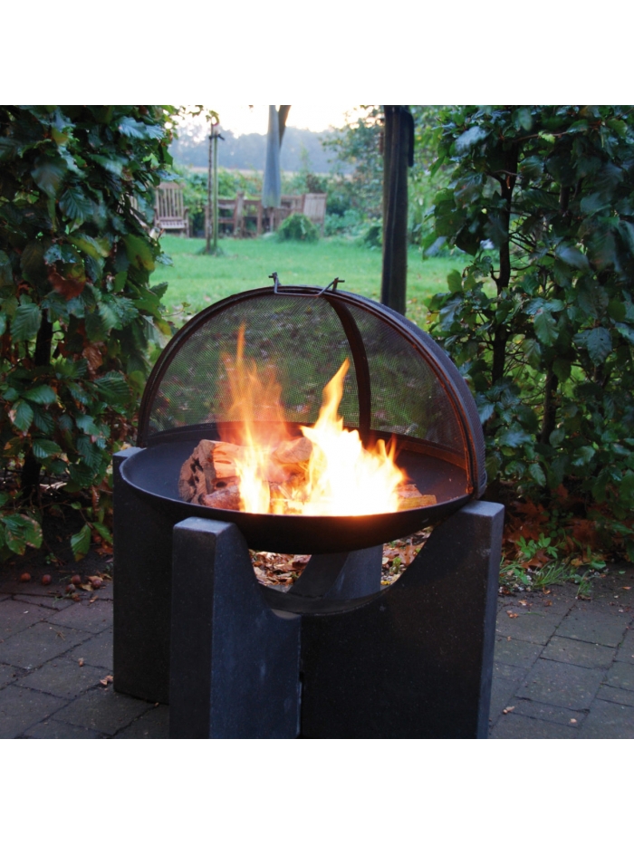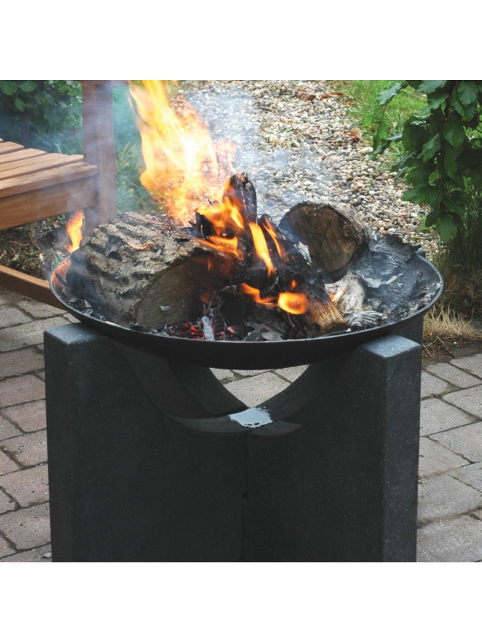 Brasero en fonte pour l’extérieur avec un socle en granito.