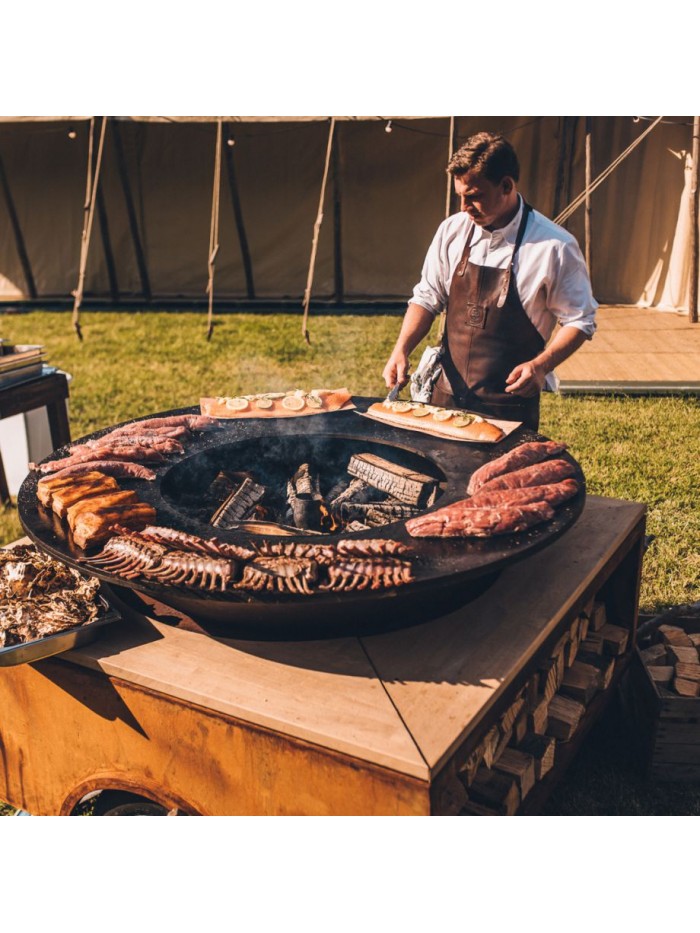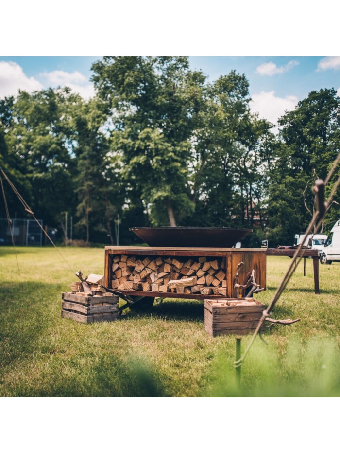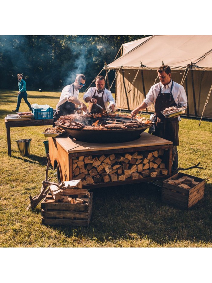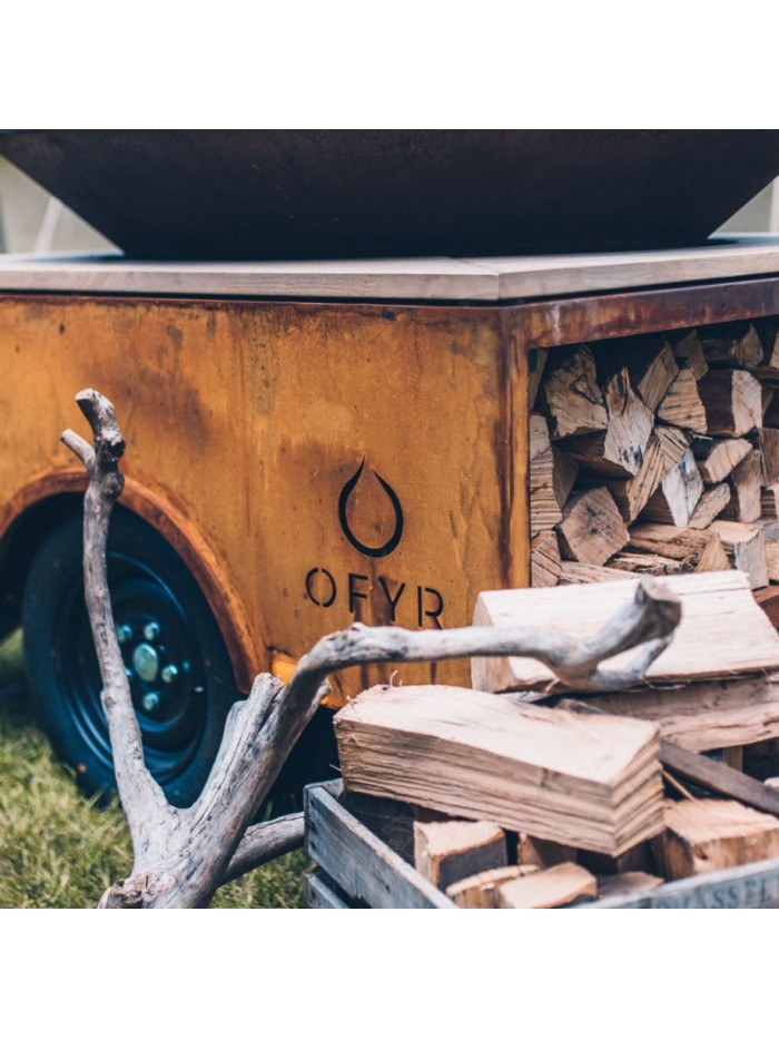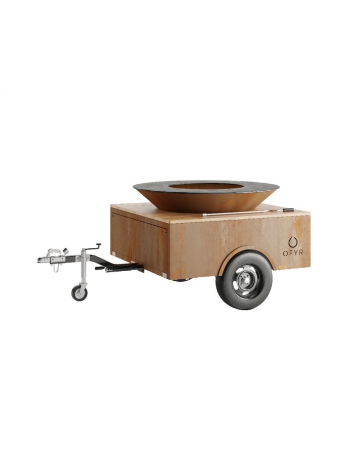 L'OFYR Trailer est l'unité de cuisson idéale pour tous vos événements : elle est facile à transporter et a la taille d'un OFYR XL, pour préparer des repas épiques jusqu'à 150 personnes. La remorque a complètement été testée et certifiée. La barre de traction de la remorque peut se détacher, tout comme les blocs en bois en haut de la remorque. Vous disposez d'un espace de stockage à l'arrière et à l'avant, ce qui est idéal pour transporter votre bois de chauffage et démarrer en très peu de temps. Disponible en acier de Corten.