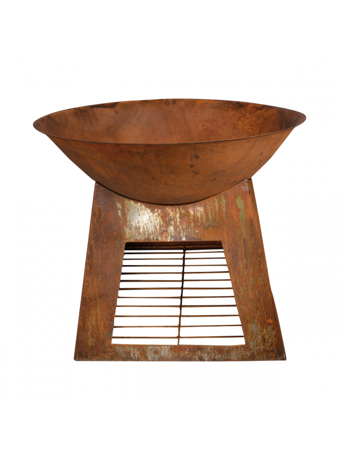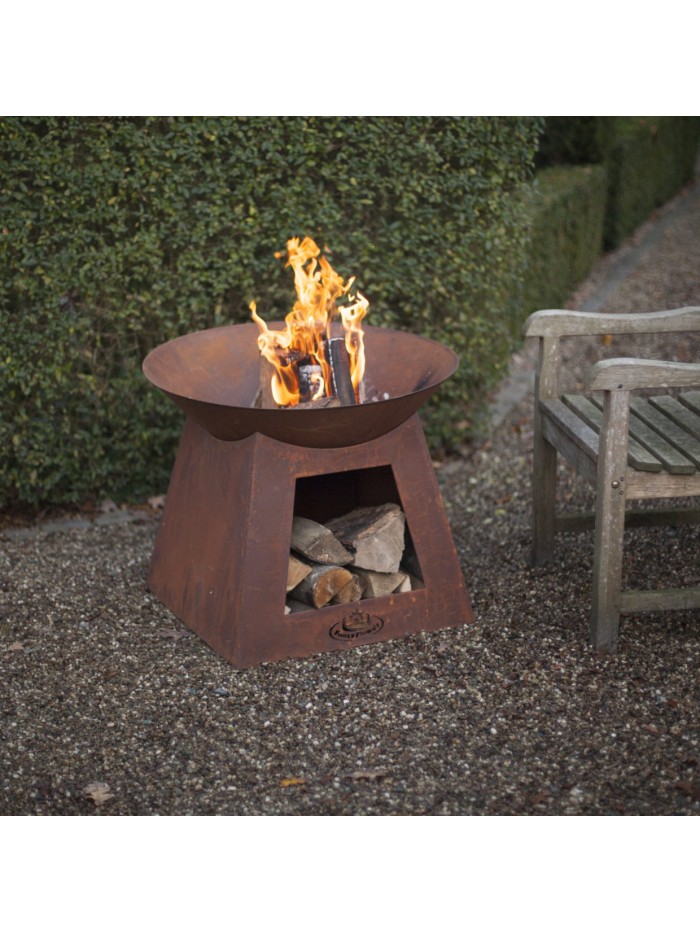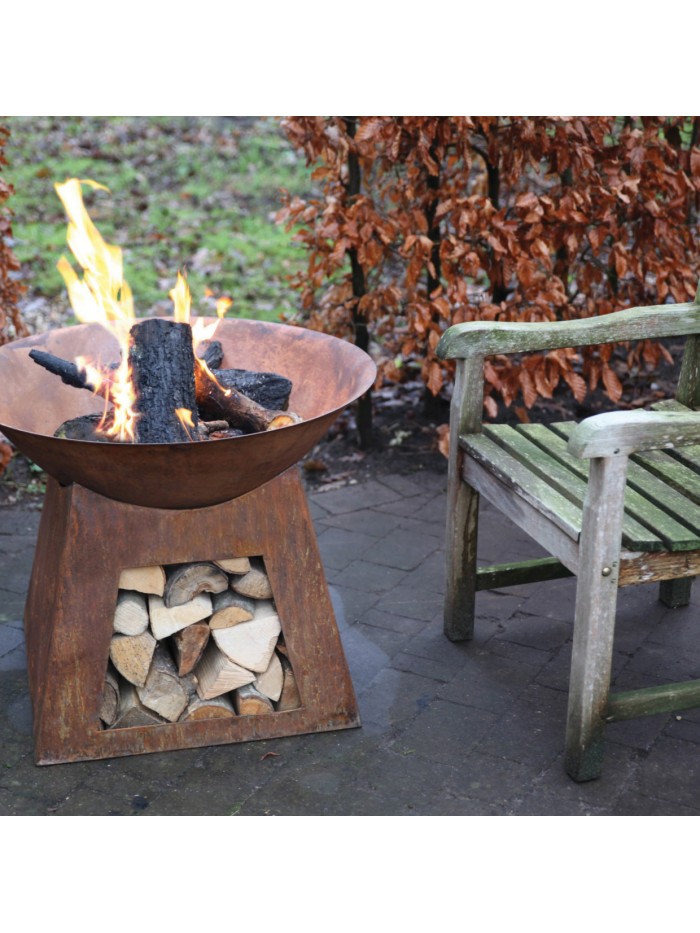 Ce brasero rond avec sa base stable offre une ambiance et une chaleur tout autour. La base sert également à ranger le bois. A l'usage, l'article va rouiller sous l'influence du feu, des intempéries et du temps, rendant la patine encore plus authentique.