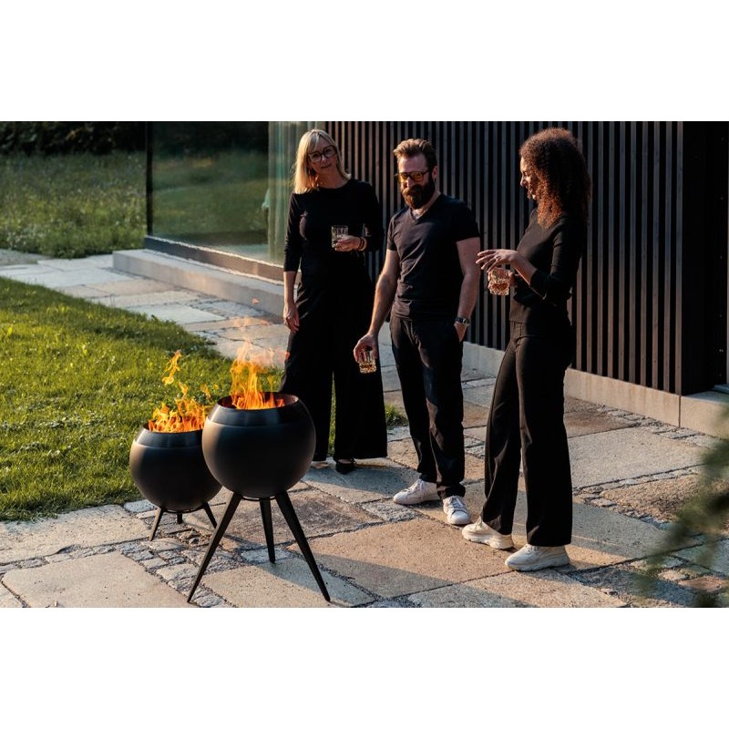 Les flammes de la combustion primaire et secondaire se rejoignent juste sous l'ouverture pour former une unité réconfortante, faisant de MOON sur son pied haut l'accompagnement idéal de chaque garden-party, même dans les environnements urbains.