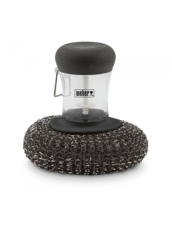 L'éponge métallique pour plancha enlève les aliments collés tout en protégeant la surface lisse de votre plancha. Placez l'éponge sur la plancha et appuyez doucement sur le bouton du manche pour libérer le savon.
