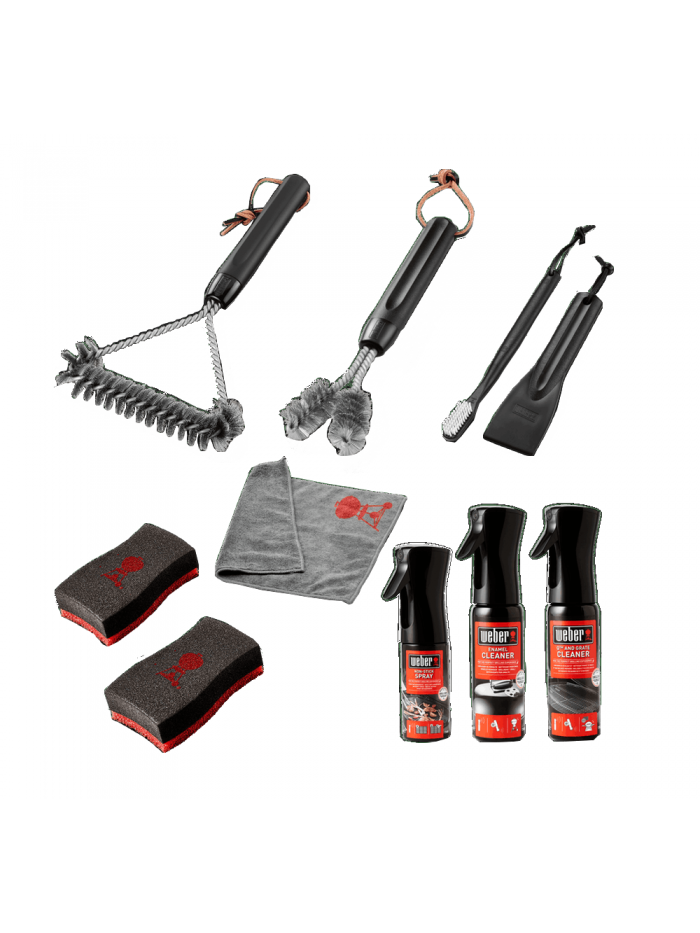 Avec un peu de soin et d’amour, votre barbecue restera comme neuf, année après année. Un nettoyage en profondeur régulier peut faire des merveilles, aussi bien pour le look du barbecue que pour la sécurité et la répartition optimale de la chaleur. Avec le kit de nettoyage conçu spécialement pour les barbecues à gaz Weber® émaillés, vous avez tout ce qu’il vous faut pour conserver l’aspect et les performances de votre barbecue. Comprend des brosses, des produits de nettoyage, deux éponges, un chiffon et de l’huile anti-adhérence.