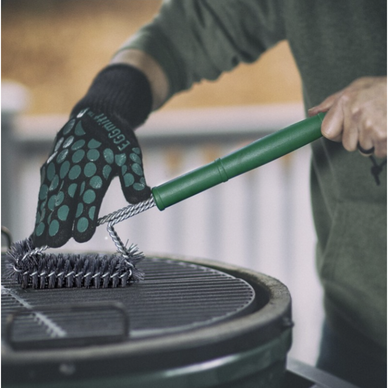 Les brosses à récurer à grille à poils en nylon de Big Green Egg sont dotées de poils en nylon robustes recouverts de diamants qui nettoient facilement et en toute sécurité même les grilles de cuisson les plus salissantes.