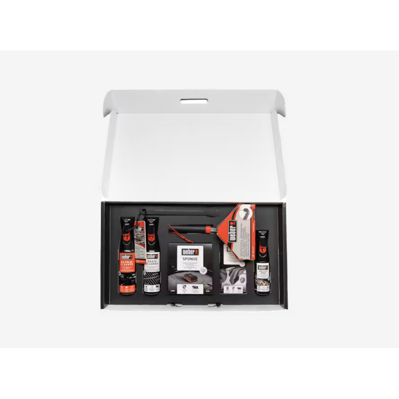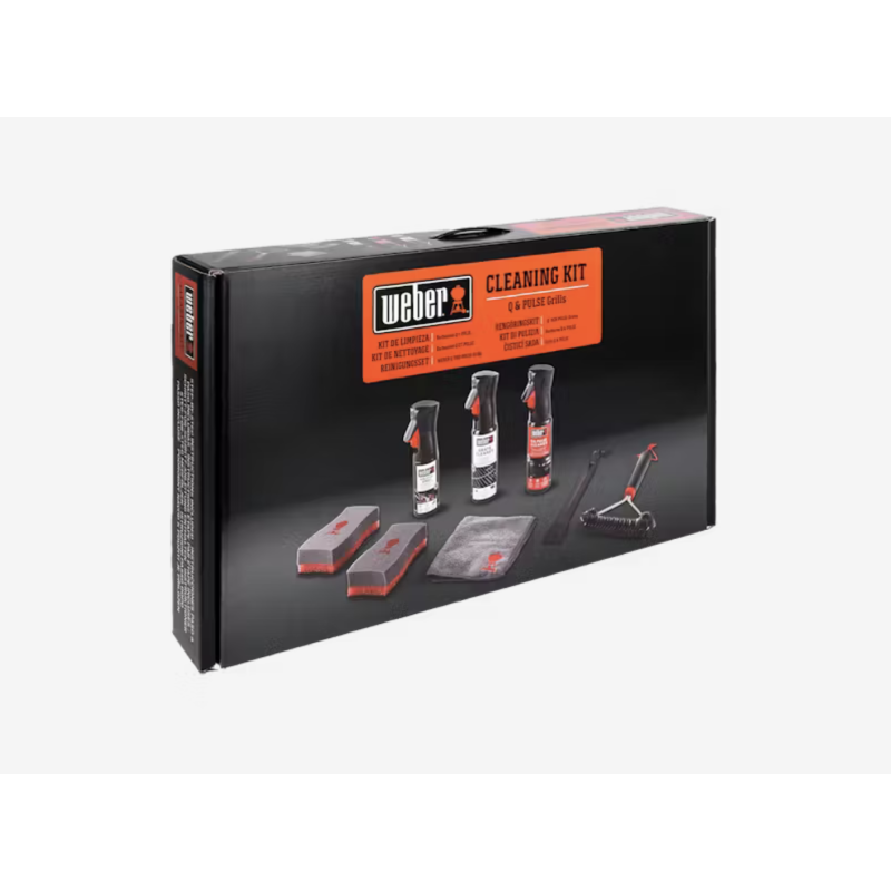 Il n’a jamais été aussi facile de nettoyer votre barbecue. Avec le kit de nettoyage spécialement conçu pour les barbecues Weber® Q et Pulse, vous avez tout ce qu’il vous faut pour maintenir votre barbecue en parfait état. Vous avez ainsi la garantie d’obtenir d’excellents résultats lors de toutes vos séances de grillades, année après année. Vous trouverez tout ce dont vous avez besoin dans cette boîte : une brosse très efficace, un produit nettoyant, deux éponges, un grattoir de cuve, un chiffon et de l’huile anti-adhérence.
