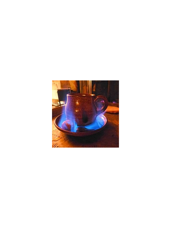 Le Brûlot Charentais séduit par son originalité. Sa mise en oeuvre nécessite l'utilisation de tasses à Brûlot, en grès, très résistantes à la chaleur. Par son rituel, ses saveurs et son coté ludique (image de sa flamme bleutée), tout en émerveillant petits et grands, il illuminera vos fins de repas en renforçant leur côté convivial.