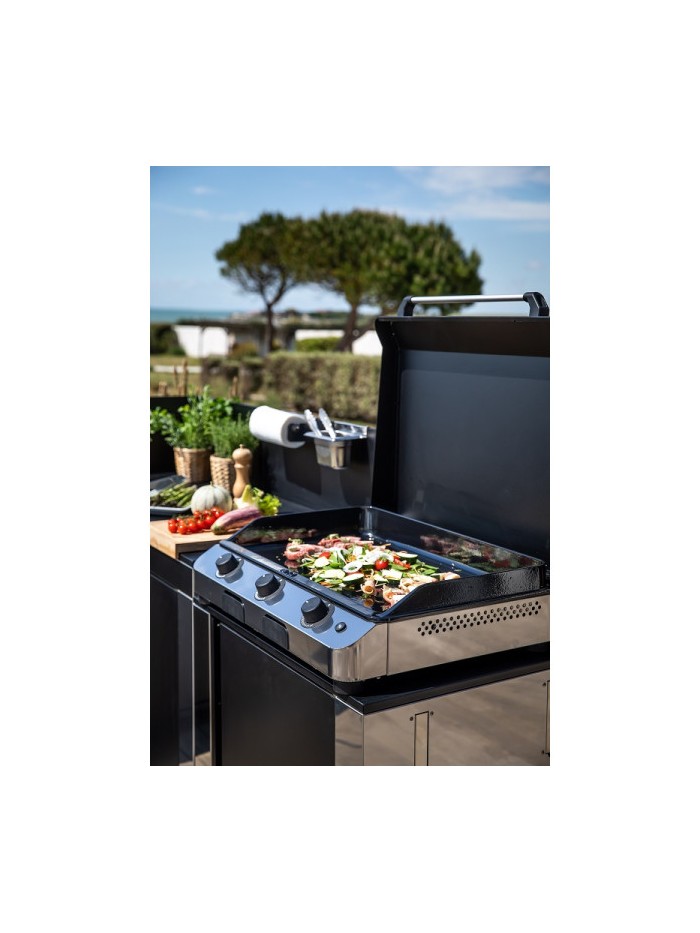 Ce capot en acier galvanisé s'installe facilement sur les planchas Fusion 75. Profitez du côté multifonction du capot :