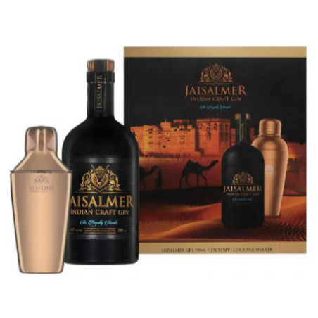Découvrez le coffret Jaisalmer, ce coffret comprends une bouteille de Gin et un shaker Jaisalmer couleur cuivre, le tout dans un joli coffret parfait pour offrir aux amateurs de gin!
