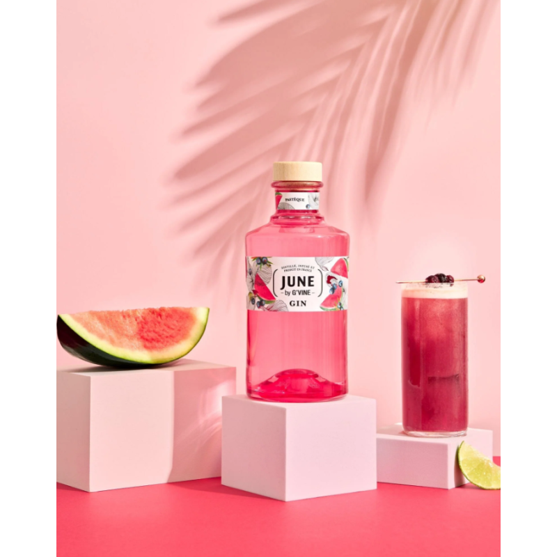 June est un gin français unique, conçu pour offrir une alternative douce et gourmande aux gins traditionnels. Distillé à partir de raisins et enrichi d’une infusion de pastèque, June offre une expérience rafraichissante, fruitée et conviviale.