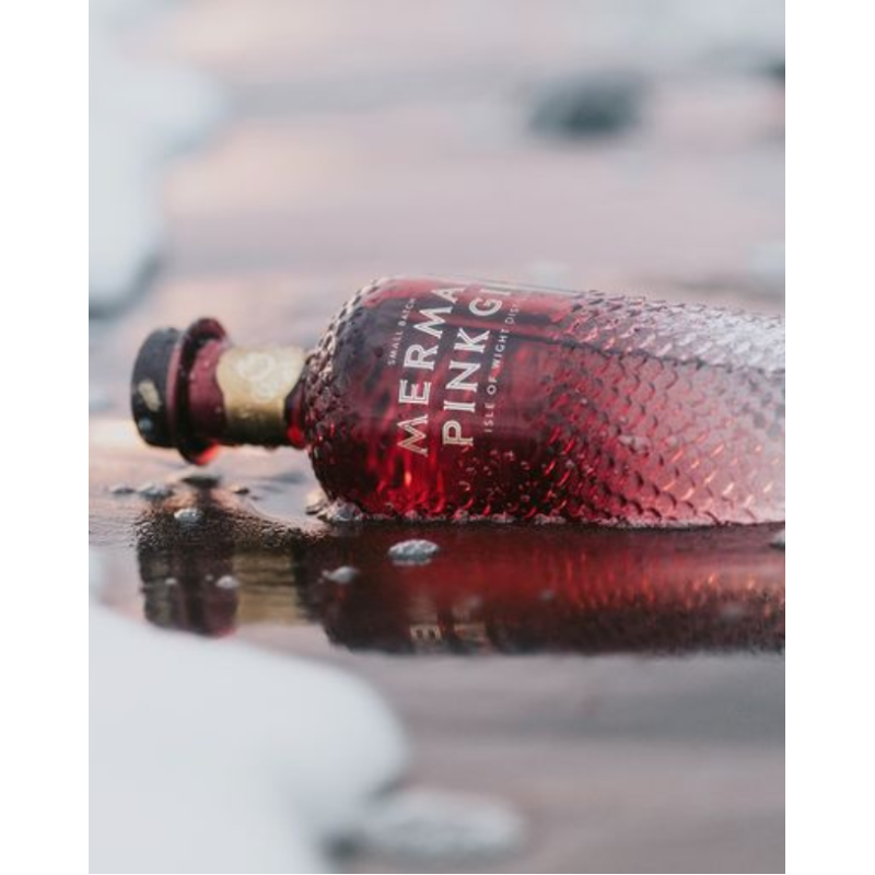 Façonné à partir de dix plantes récoltées à la main sourcées de manière éthique, le Mermaid Pink Gin tire ses doux arômes des fraises anglaises infusées et les combinent avec la saveur onctueuse et complexe du Mermaid Gin, un mélange de zeste de citron, de graines du paradis et de salicorne.