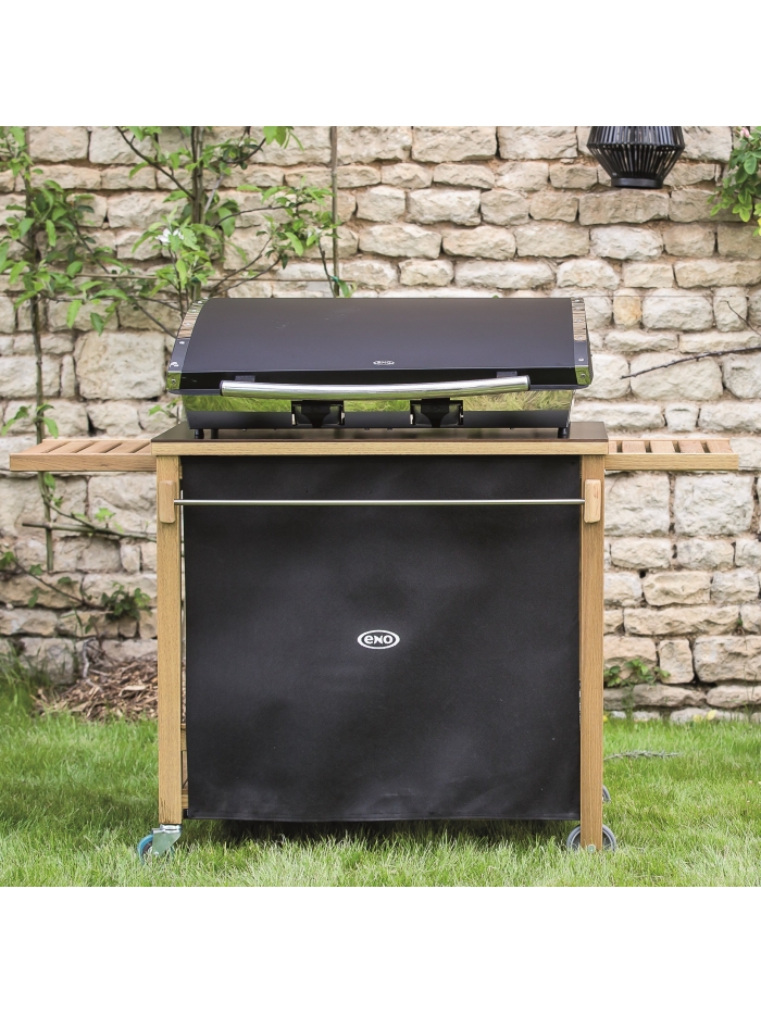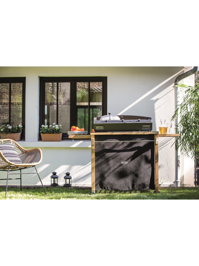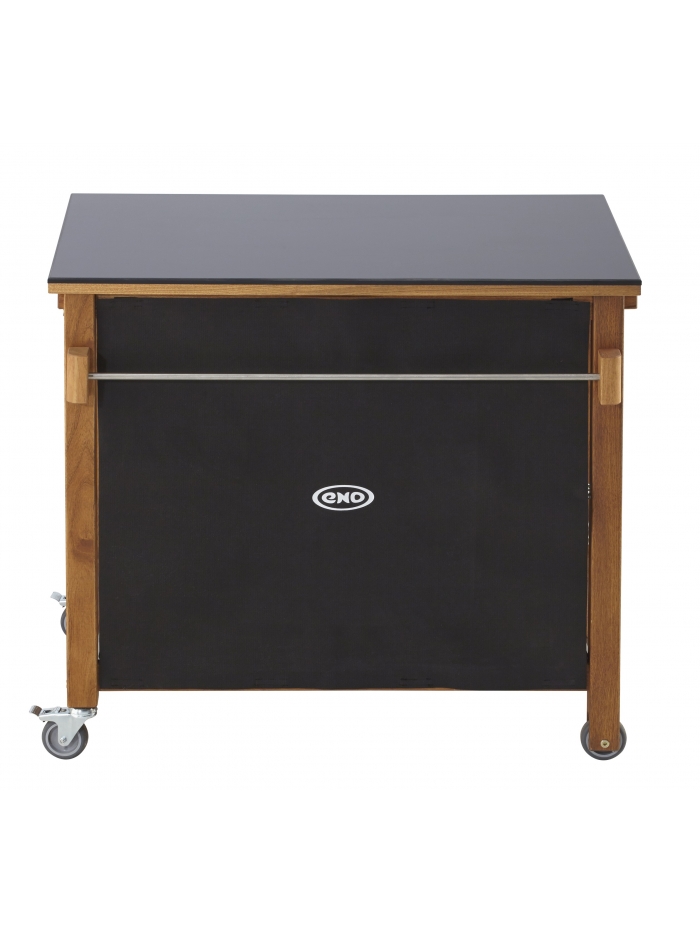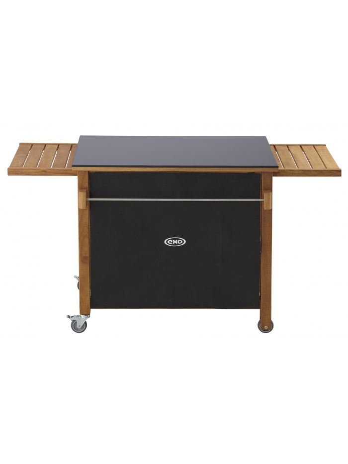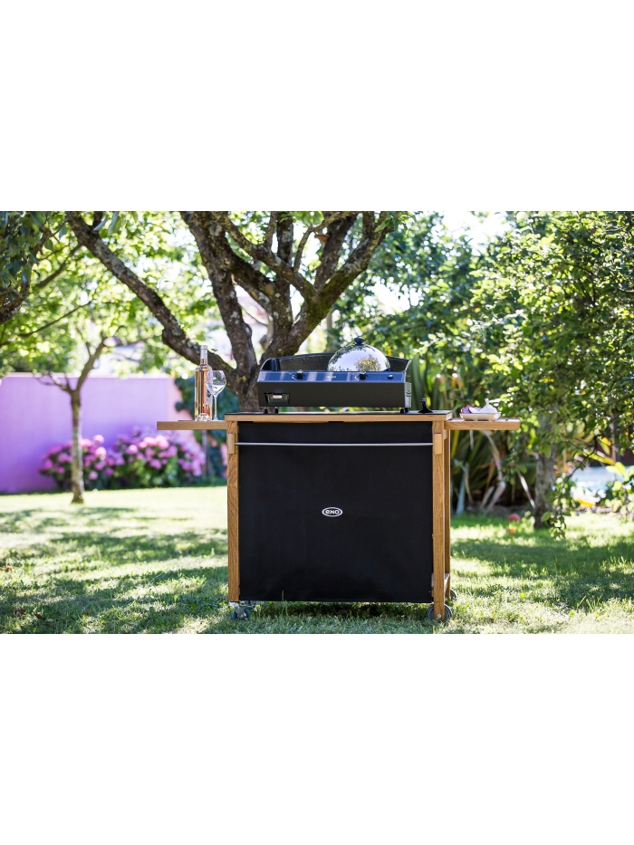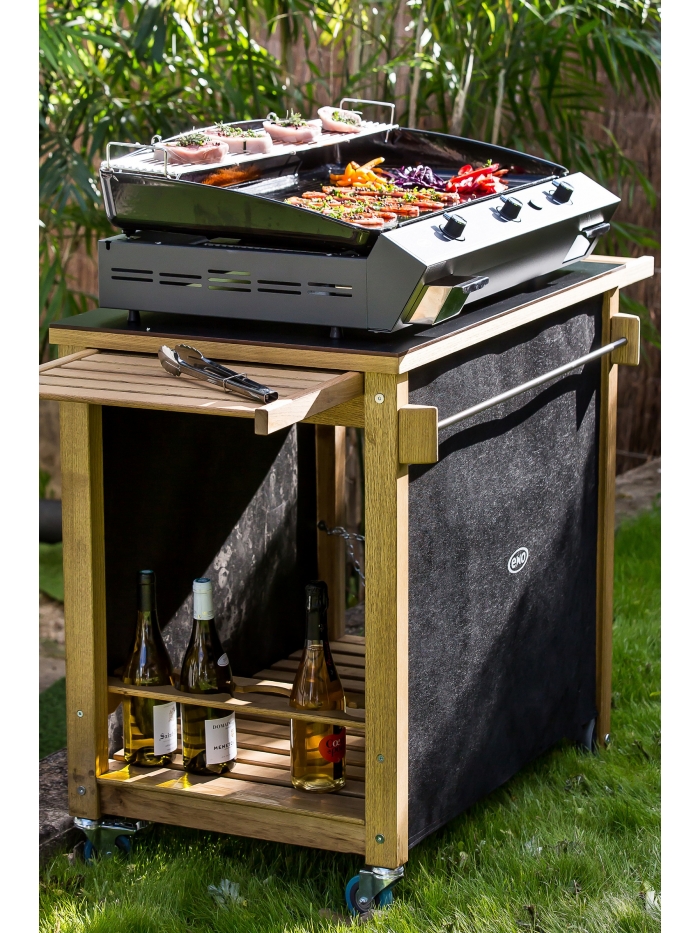 Table pour plancha en bois et HPL noir, 2 tablettes
