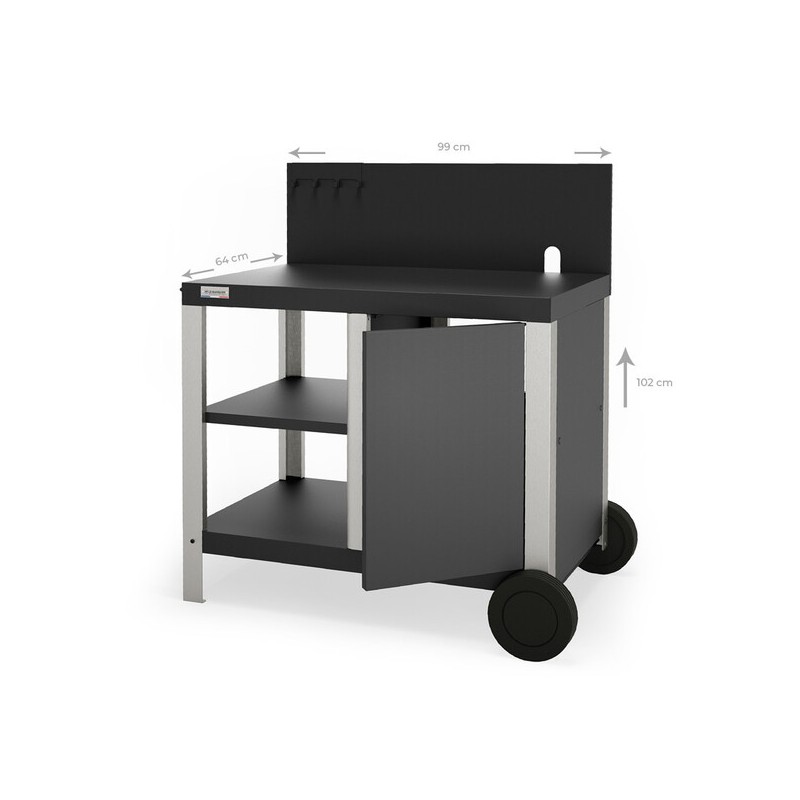 • Espace de rangement fonctionnel : 2 étagères, 1 espace de rangement fermé pour la bouteille de gaz et un porte-ustensiles inclus,