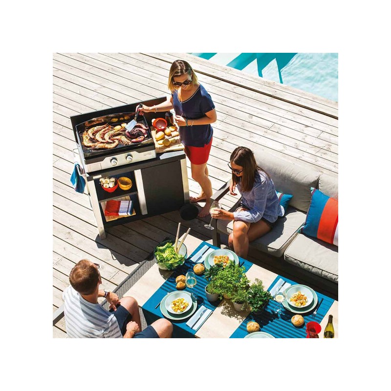 • Large espace de travail : plateau supérieur 87x54 cm pouvant recevoir la plancha Allure 260 avec son couvercle.