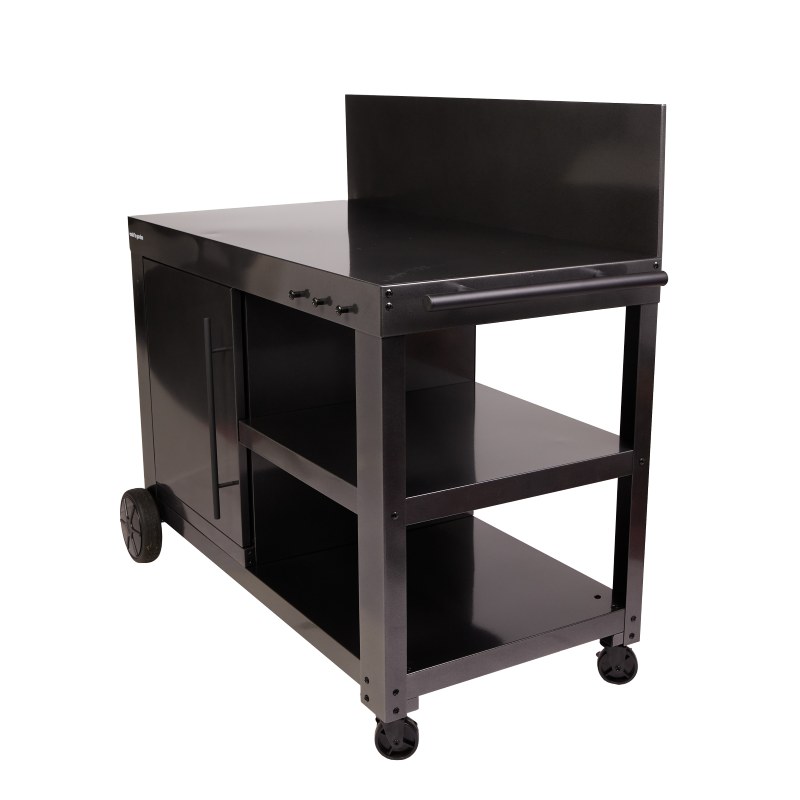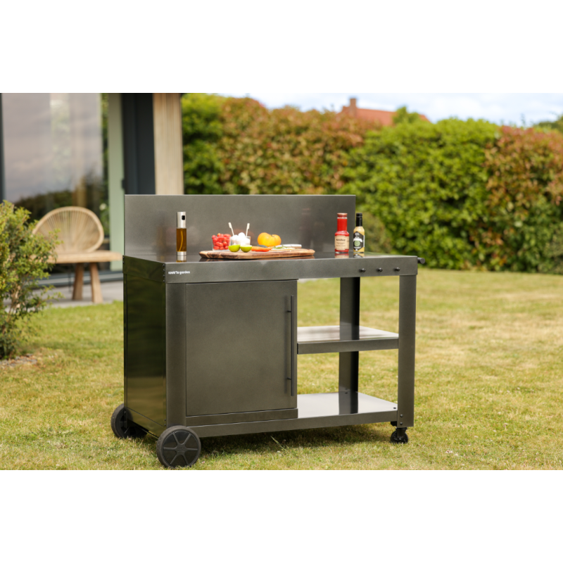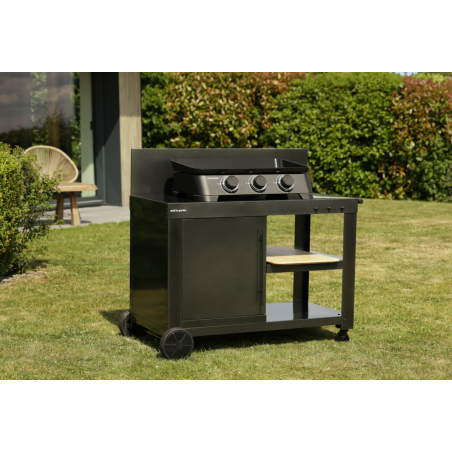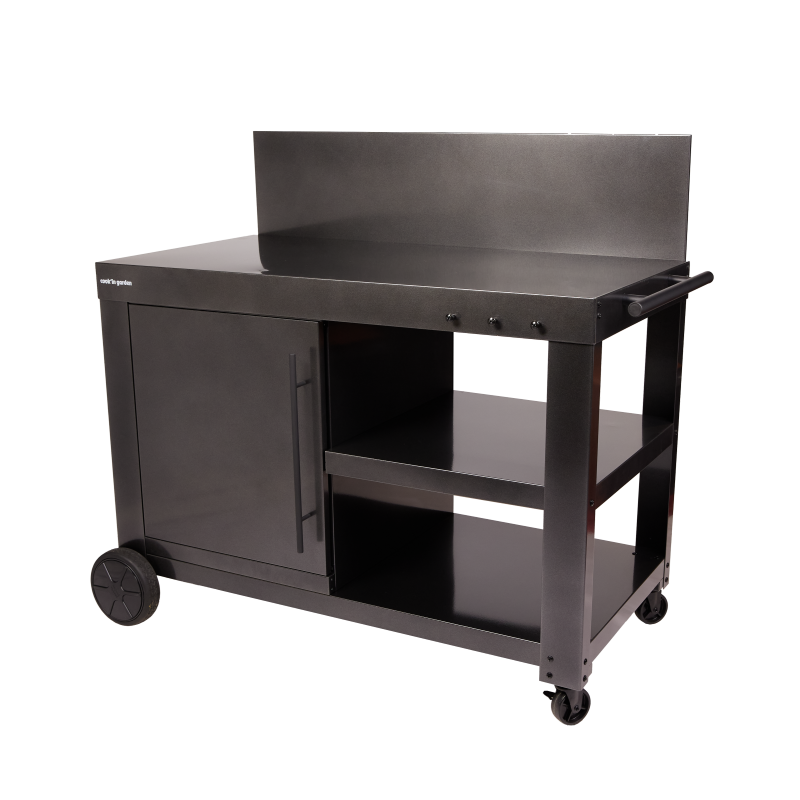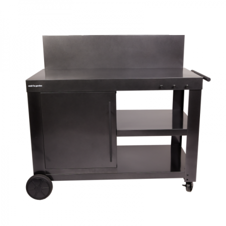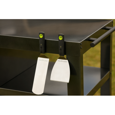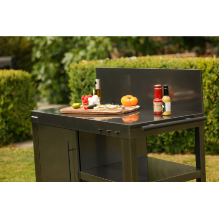 Fabriqué en acier époxy noir, la desserte combine robustesse et durabilité pour un usage extérieur régulier. Ce revêtement protège efficacement la structure contre l’humidité, la corrosion et les variations climatiques, tout en facilitant l’entretien au quotidien. Au-delà de l'aspect technique, ce matériau est compatible avec les ustensiles aimantés, permettant de les poser directement sur la desserte, sans efforts.
