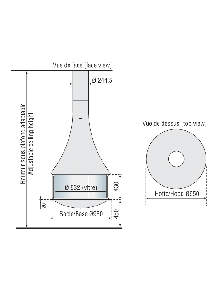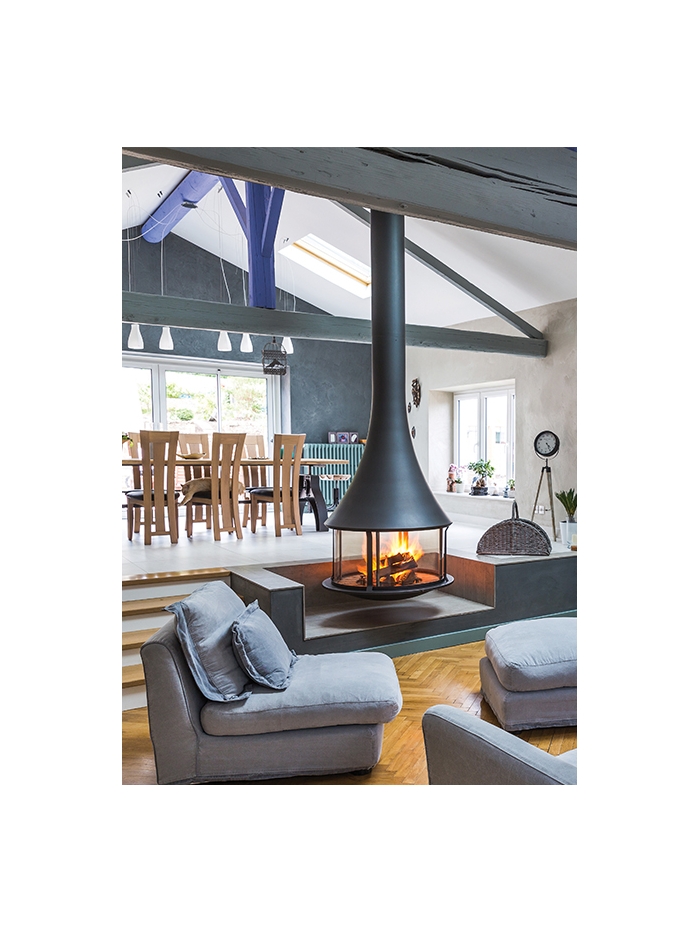 Centrale et vitrée, la cheminée ZELIA 908 est conçue pour apporter chaleur et quiétude à votre foyer. Délicieusement dessinée, cette cheminée est murale ou suspendue. Au centre même de votre pièce à chauffer, elle rehausse le charme de votre intérieur. La cheminée ZELIA 908 ne prend que peu de place. D'un diamètre idéal, elle s'installe aisément dans des volumes aérés et aériens. La cheminée ZELIA vous offre une vision à 360° sur son âtre, de quoi se perdre de longues heures dans la contemplation du feu hivernal. Ce foyer ouvert sur toute la pièce permet un chauffage optimal de celle-ci avec un minimum de consommation énergique. Cette cheminée ZELIA 908 est la garantie d'une maison chaleureuse et accueillante.