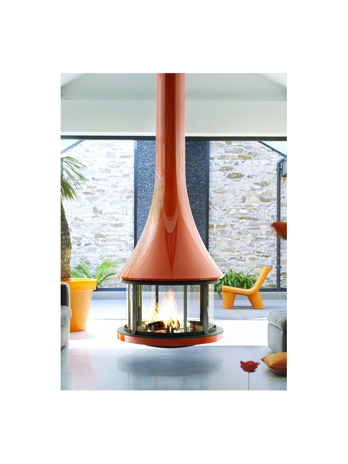 La cheminée centrale Zélia 908 color est ici dans une orange flamboyant. Double hotte en aluminium laquée RAL « orange pur #2004 », foyer fermé en métal mat gris anthracite équipé de 4 vitres dont 2 pivotantes pour faciliter le chargement, la finition de cette cheminée est tout simplement époustouflante. Dans le monde, seul JC Bordelet sait aujourd'hui travailler le métal avec tant de pureté et de légèreté, pour créer un objet à l’esthétique naturelle. Jusque-là uniquement disponible en centrale, la cheminée Zelia 908 Color peut dorénavant s'installer en version murale. Osez la couleur, distinguez-vous, commencez votre histoire avec JC Bordelet.