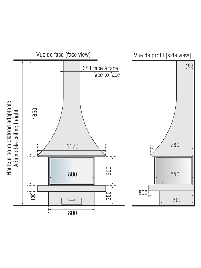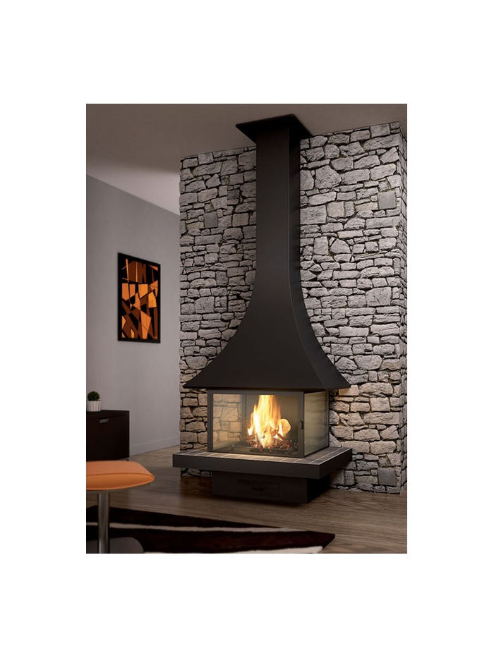 Utilisant la même hotte que le modèle suspendu 985, ce modèle de cheminée en version murale vitrée permet de profiter d’une belle vision de la flamme tout en se chauffant au bois, pour un choix à la fois design et écologique