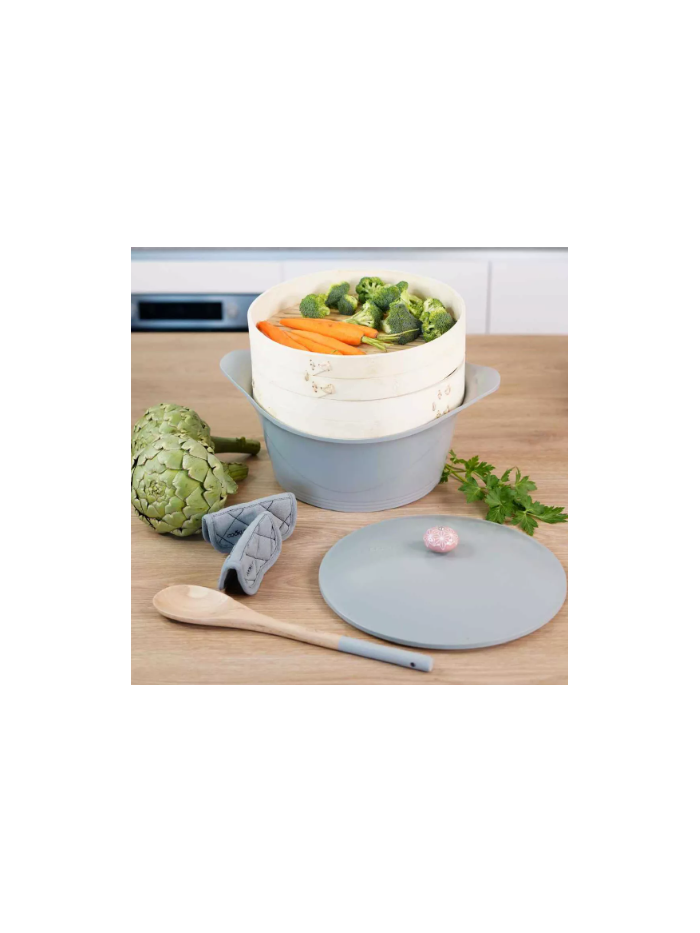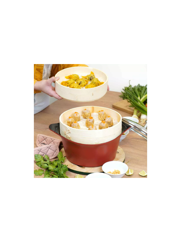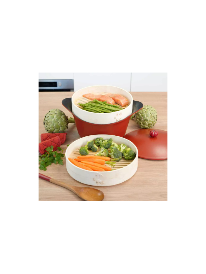 Paniers vapeur en bambou pour une cuisine traditionnelle saine : légumes, viandes, poissons, desserts Une cuisine à la vapeur authentique et saine à la maison. Découvrez le cuit vapeur en bambou sur 2 étages adaptés à l'Incroyable Cocotte en 24 et 28 cm. Il vous permet de cuire à la vapeur légumes, riz, brioches, poissons, viandes...