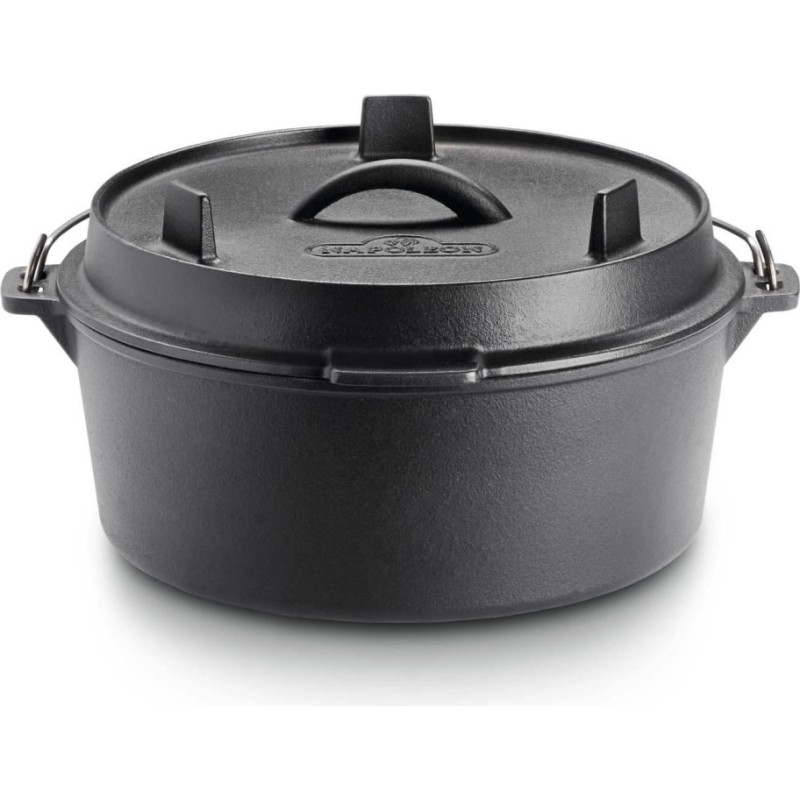 Cet accessoire est idéal pour une cuisson lente de grandes quantités. Four, barbecue, brûleurs latéraux, charbon de bois ou même cheminée... Cette cocotte en fonte s'adapte à tous les supports de cuisson. Polyvalent, elle est idéale pour les soupes, les ragoûts, les haricots et même le pain. Le couvercle et le faitout sont tous deux équipés de pieds intégrés et le couvercle peut même servir de poêle à frire en fonte. Cuisinez partout où vous le souhaitez avec cette cocotte en fonte.