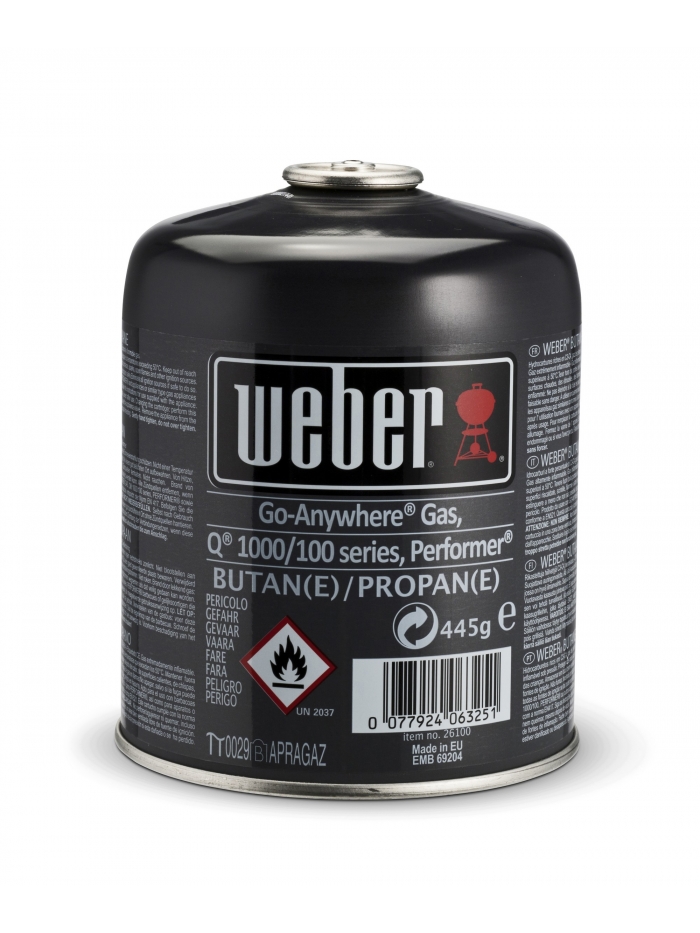 La cartouche de gaz Weber de 445g est destinée à la série Q1000 et au Performer avec allumage à gaz.