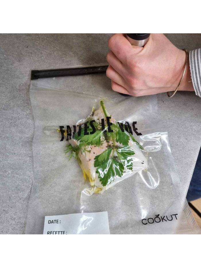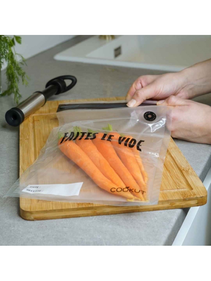 - Des aliments plus juteux : Les sacs hermétiques empêchent l'évaporation de l'eu des aliments et le risque de les brûler.