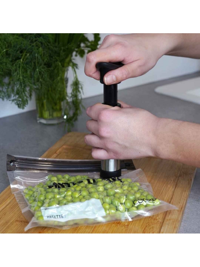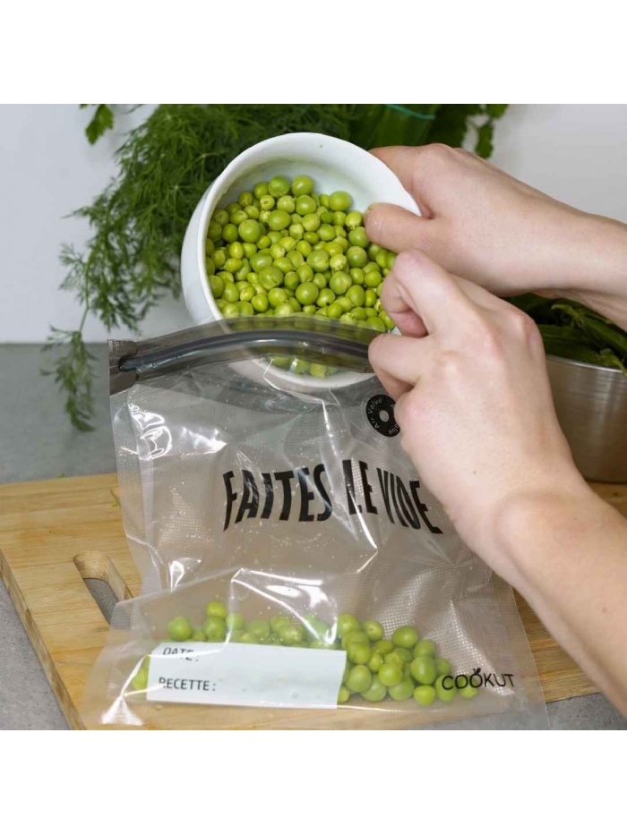 La conservation sous vide avec des sacs réutilisables sans PBA pour conserver vos aliments plus longtemps en empêchant l'oxydation et le développement microbien, conservez tous vos produits frais : plats préparés, viandes et poissons, fruits et légumes...