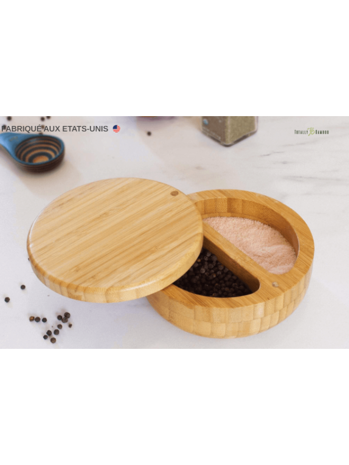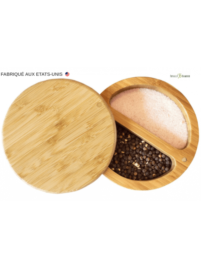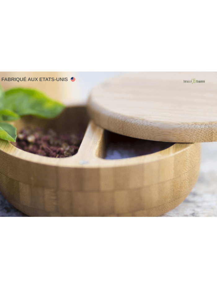 Conservez vos arômes dans ce rangement Totally Bambou ! Faite à la main en bambou issu de l'agriculture biologique. Couvercle pivotant : pour une ouverture / fermeture facile Verrou magnétique pour un bon verrouillage du couvercle. Boîte à deux compartiments pour conserver vos arômes. Lavage à la main recommandé avec de l'eau tiède.