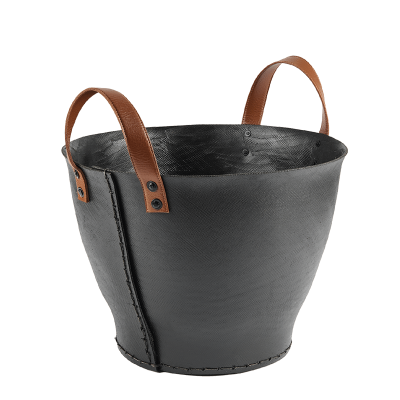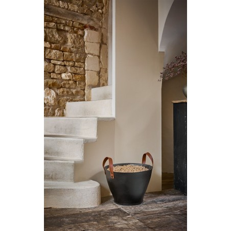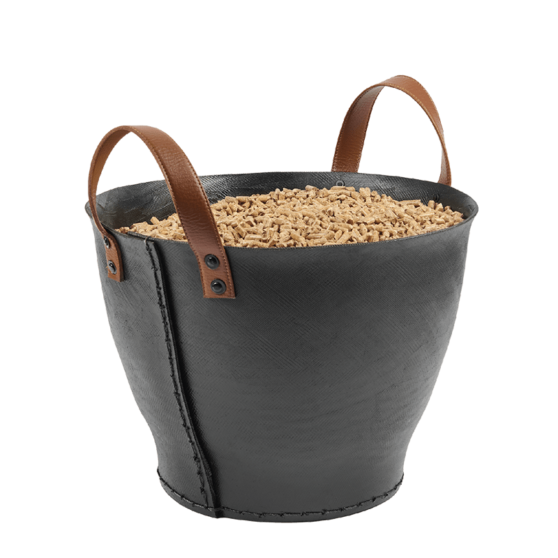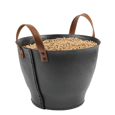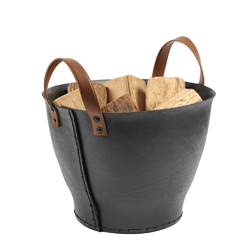 La corbeille Tinos de la marque Dixneuf est un accessoire de rangement pour granulés ou bois fabriqué en matière pneu recyclé à l’aspect noir raffiné.