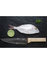 La lame de 20cm reste rigide et stable lors de la coupe. Le manche en hêtre, issu d'exploitations françaises, est verni pour le protéger contre les salissures et l'eau. Le style Parallèle : simple et efficace.