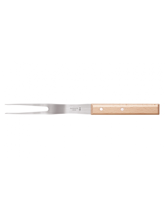 Elle est dotée d'une lame de 16cm en acier Inoxydable demi-soie et d'un manche en hêtre verni pour la protéger contre l'humidité et les tâches. La fourchette facilite le maintient de la volaille, du gigot, du rôti lors de leur découpe. Egalement utile pour retourner n'importe quelle viande durant la cuisson.