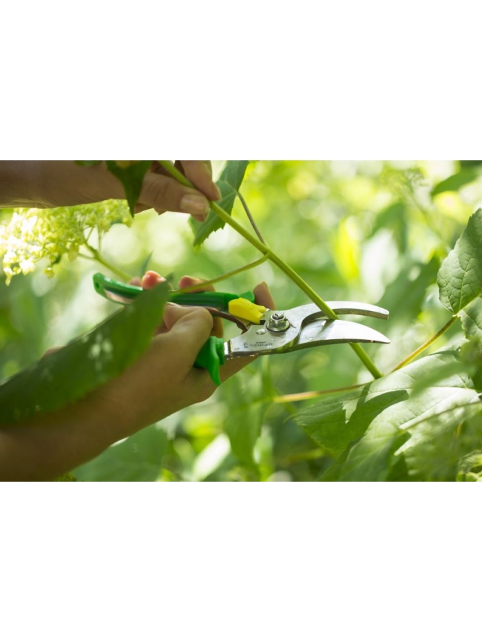 Sécateur avec 3 positions pour s'adapter au diamètre des branches et à la taille de la main.