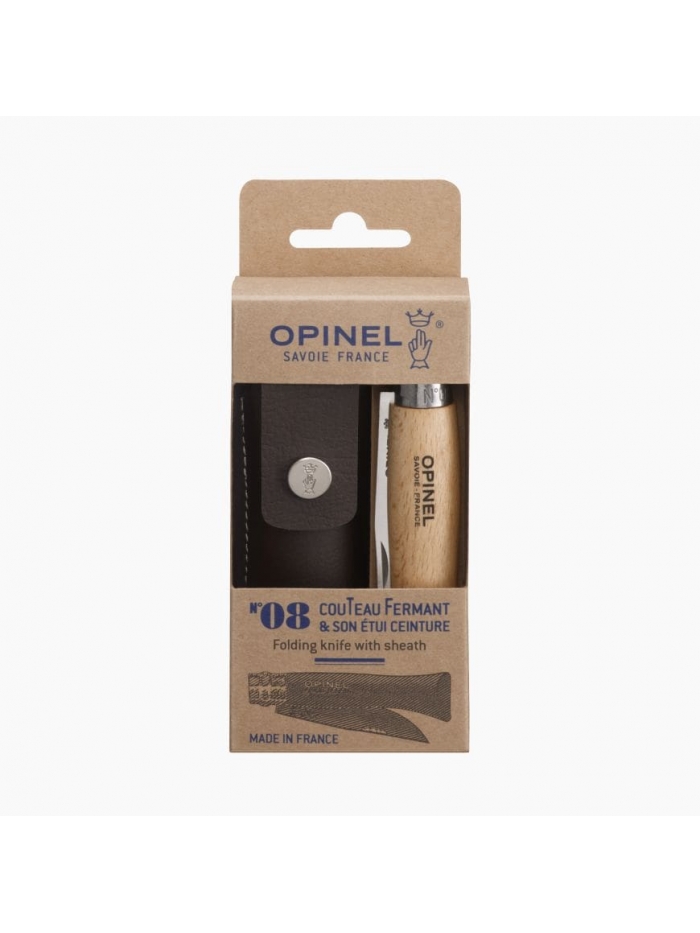 Le hêtre est le bois le plus utilisé pour la fabrication des manches Opinel. Issu d'exploitations françaises, il est dur, résistant et facile à travailler. D'un aspect homogène, sa couleur claire varie du jaune au rosé. Il est reconnaissable par la présence de nombreux petits traits sombres. Le manche est verni pour être mieux protégé contre l'humidité et les salissures.