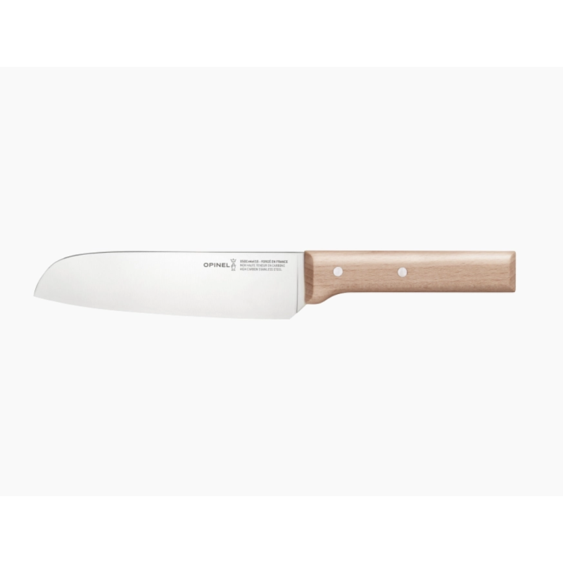 Opinel a sélectionné 8 lames aux profils étudiés pour optimiser le geste et garantir une coupe parfaite adaptée à chaque aliment. La lame de 17 cm reste rigide et stable lors de la coupe. Le manche en bois est verni pour protéger contre l'humidité et tous types de salissures.