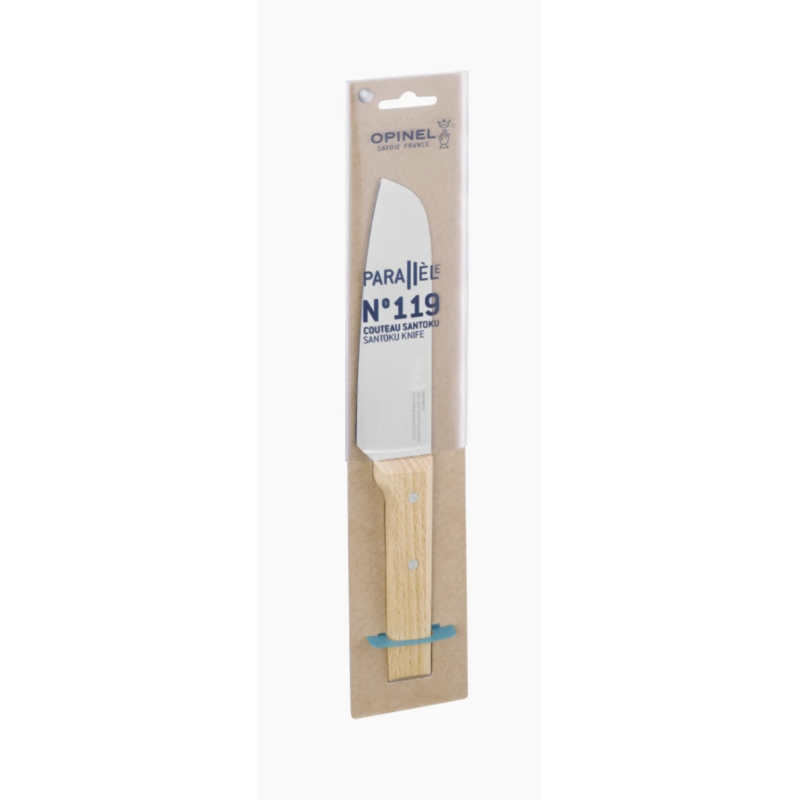 Le hêtre est le bois le plus utilisé pour la fabrication des manches Opinel. Issu d'exploitations françaises, il est dur, résistant et facile à travailler. D'un aspect homogène, sa couleur claire varie du jaune au rosé. Il est reconnaissable par la présence de nombreux petits traits sombres. Le manche est verni pour être mieux protégé contre l'humidité et les salissures.