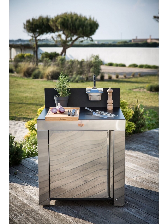 Module Cuisine HPL et Inox Plancha avec crédence Acier Noir ENO
