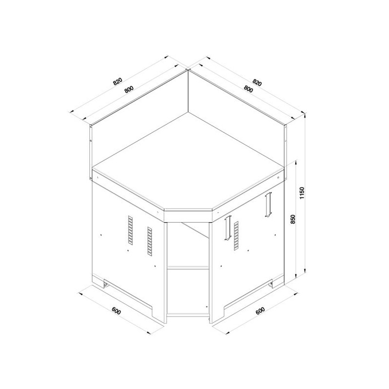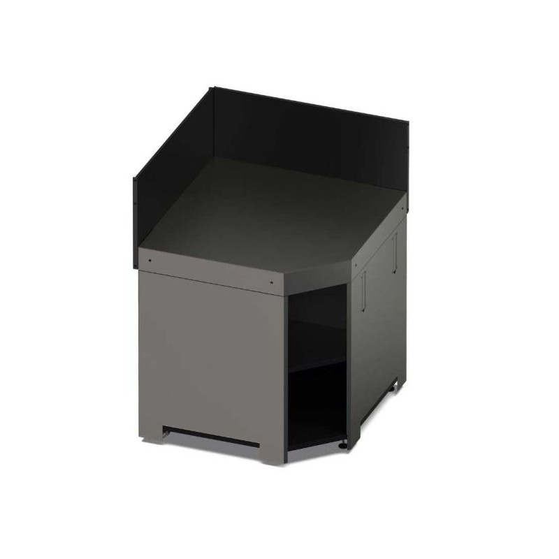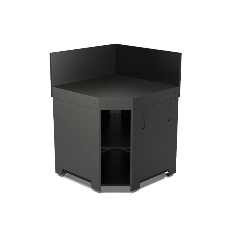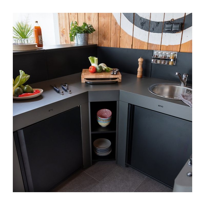 Spécialement conçu pour faire un angle à sa cuisine, ce module est équipé d'étagères de rangement et offre un large plan de travail. Facile à installer avec 2 roues et poignées escamotables pour le transport, il est équipé de pieds réglables pour ajuster le niveau et d'une crédence haute permettant de le fixer aux autres modules.