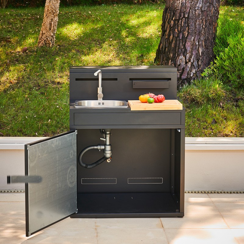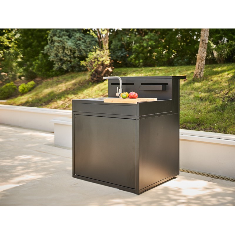 C'est tout le savoir-faire, le design et l'ADN de Forge Adour que l'on retrouve dans nos meubles de cuisine extérieure. La convivialité est à son paroxysme ! Amis épicuriens, composez, jouez, pour créer votre cuisine d'été, celle qui accueillera tous vos convives autour de son comptoir-bar pour des moments de partage et de fêtes mémorables. Car désormais, la cuisine d'extérieur se conçoit avec autant d'envie et d'exigence que la décoration intérieure, la tendance industrielle et le total look noir investi le jardin. En acier noir, nos meubles de cuisine extérieure bénéficient du revêtement 3 couches qui leur confère une meilleure résistance aux chocs, aux UV et à la corrosion.