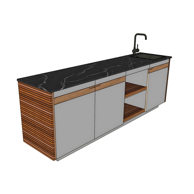 - Options habillage en bois exotique à l'arrière et/ou emplacement pour Kamado.