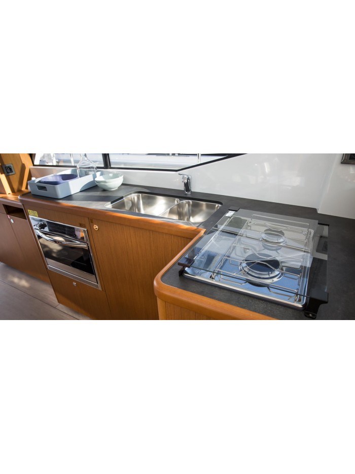 Le couvercle en verre trempé est équipé de charnières avec frein pour une ouverture et fermeture sans risque.