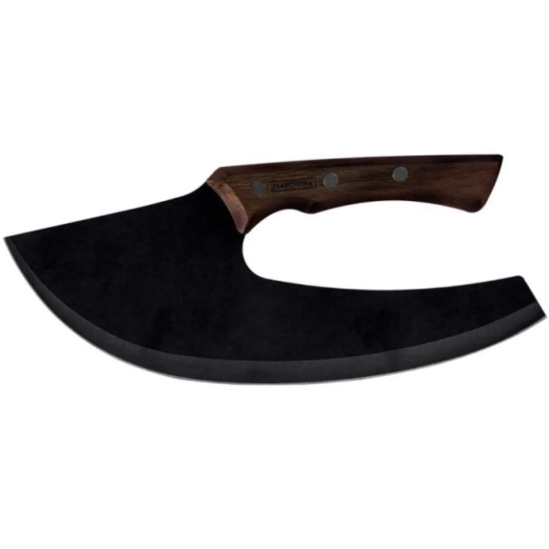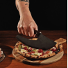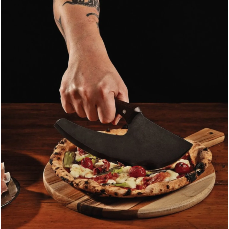 Inspiré des ustensiles traditionnels au feu de bois, ce couteau audacieux allie design ancestral et performance contemporaine. Sa large lame incurvée de 27 cm en acier inoxydable noir permet un mouvement de bascule naturel et puissant, parfait pour trancher avec précision aussi bien une pizza croustillante qu’une pièce de viande grillée.