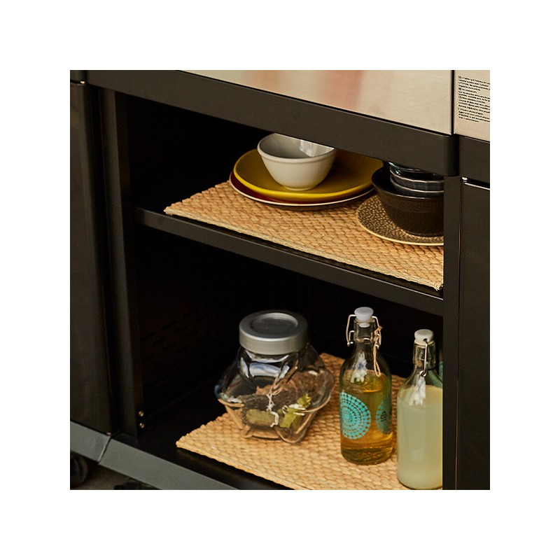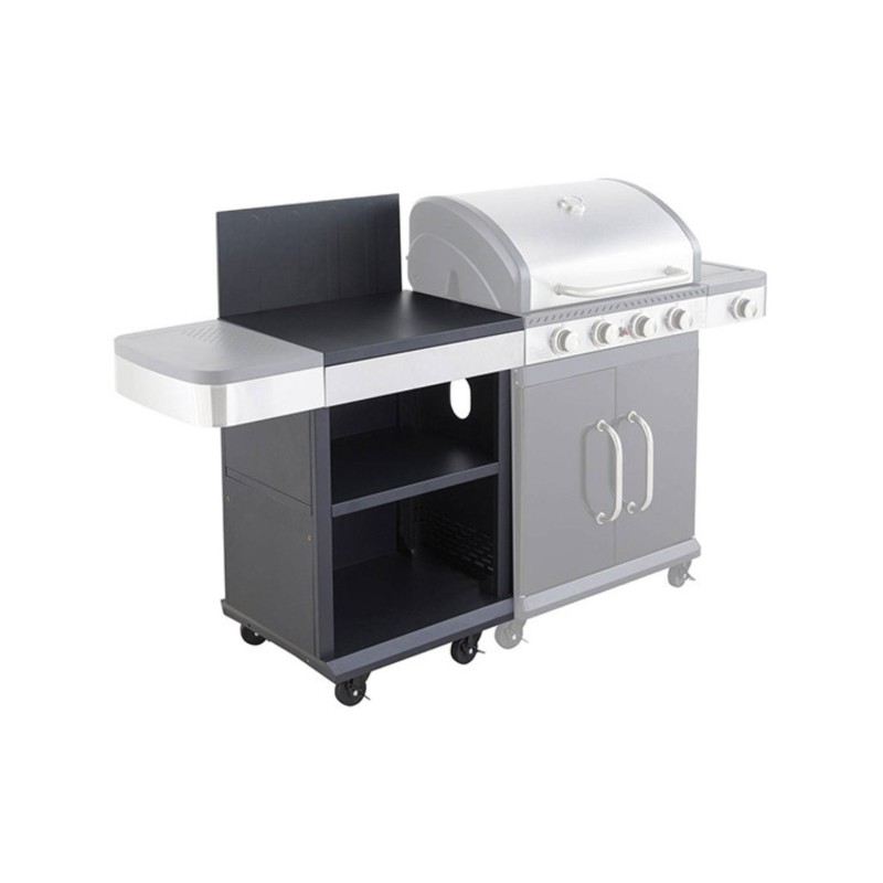 Avec la desserte Fidgi, vous pourrez agrémenter votre barbecue (Fidgi 3 ou 4) d'une zone de stockage et de préparation. Son espace de travail vous permettra de cuisiner vos aliments avant de les passer au barbecue tandis que son étage inférieur pourra servir d'espace de rangement pour vos ustensiles ou assaisonnements. La desserte, tout comme le barbecue, est déplaçable grâce à ses 4 roues multidirectionnelles avec freins.