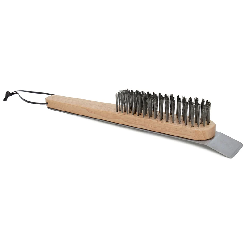 Parfait pour venir à bout des restes collés, le grattoir intégré vous aide à garder votre pierre parfaitement nette, prêt pour la prochaine pizza.