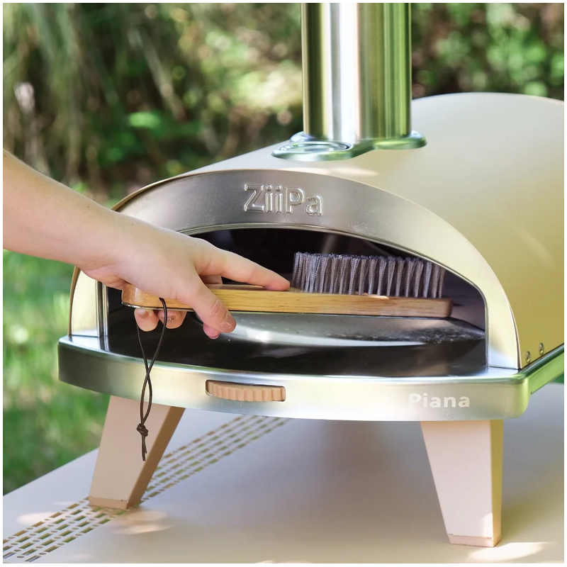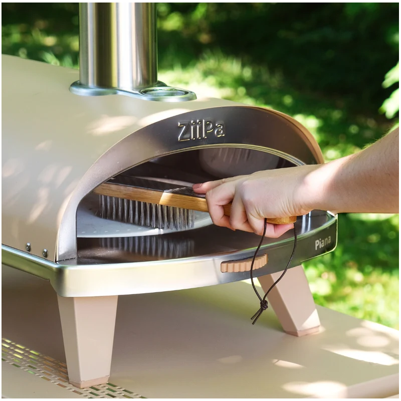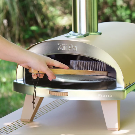 Gardez votre pierre à pizza propre en toute simplicité grâce à Ranella, notre brosse de nettoyage 2-en-1.